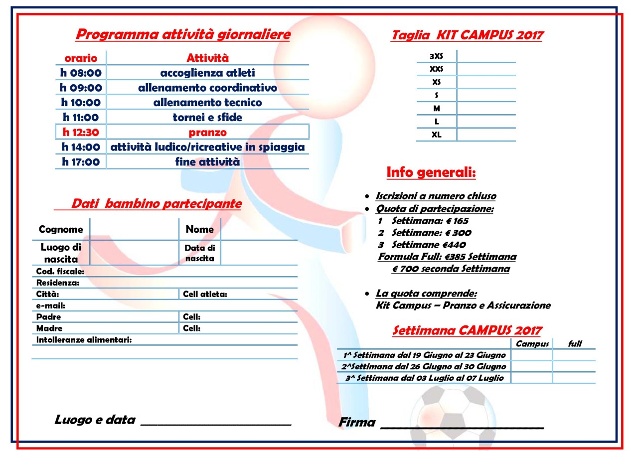 HomeSenza categoriaACADEMYcampus2017ACADEMYcampus2017L’Academy Civitanovese presenta ACADEMYcampus2017 dal 19 Giugno al 7 Luglio 2017. Direzione tecnica Mirko Cudini, Mauro Bertarelli e Academy staff. Per info 336752611 modulo iscrizione: POTREBBERO INTERESSARTI... 29 Marzo 2026I colori Rosso-Blu’ dell’Academy al 62° Torneo delle Regioni!!! 21 Marzo 2026DEAcademy Elite – si scende in campo….. e non solo!!! 7 Settembre 2025Presentazione DeAcademy PrecedenteProssimo
