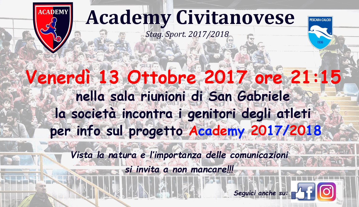 Tradizionale appuntamento per l’Academy Civitanovese che venerdì 13 Ottobre, alle ore 21.15, presso la sala riunioni di San Gabriele, come ogni anno incontrerà i genitori dei propri giovani iscritti per mostrare loro il proprio progetto sportivo–educativo.