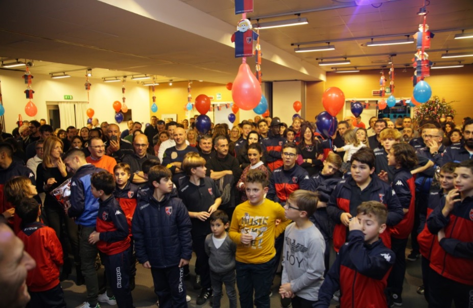 Accoglienza e divertimento 10 e lode, con palloncini e tante immagini di Babbo Natale rossoblù a fare capolino da ogni dove.