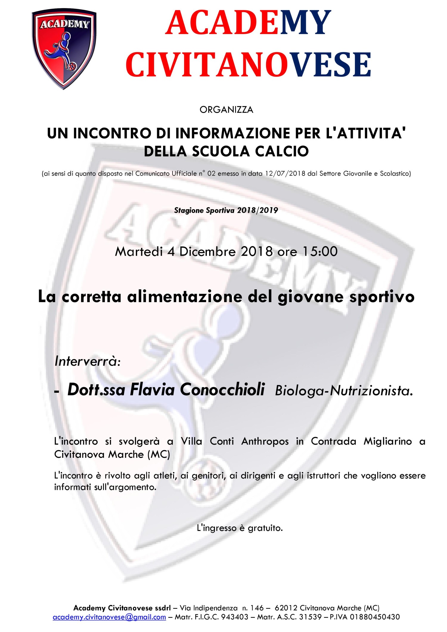 LLa società ACADEMY CIVITANOVESE organizza un incontro informativo aperto a tutti ed in particolar modo consigliato ai giovani calciatori e alle loro famiglie, sul tema: