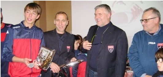 Nella foto in alto un momento della premiazione; a fianco (da sinistra) di. Vessella, Squadroni e il dirigente Carlo Canaletti, Simone Battistelli, Allievi 2003, convocato recentemente nella Rappresentativa Nazionale Under16.